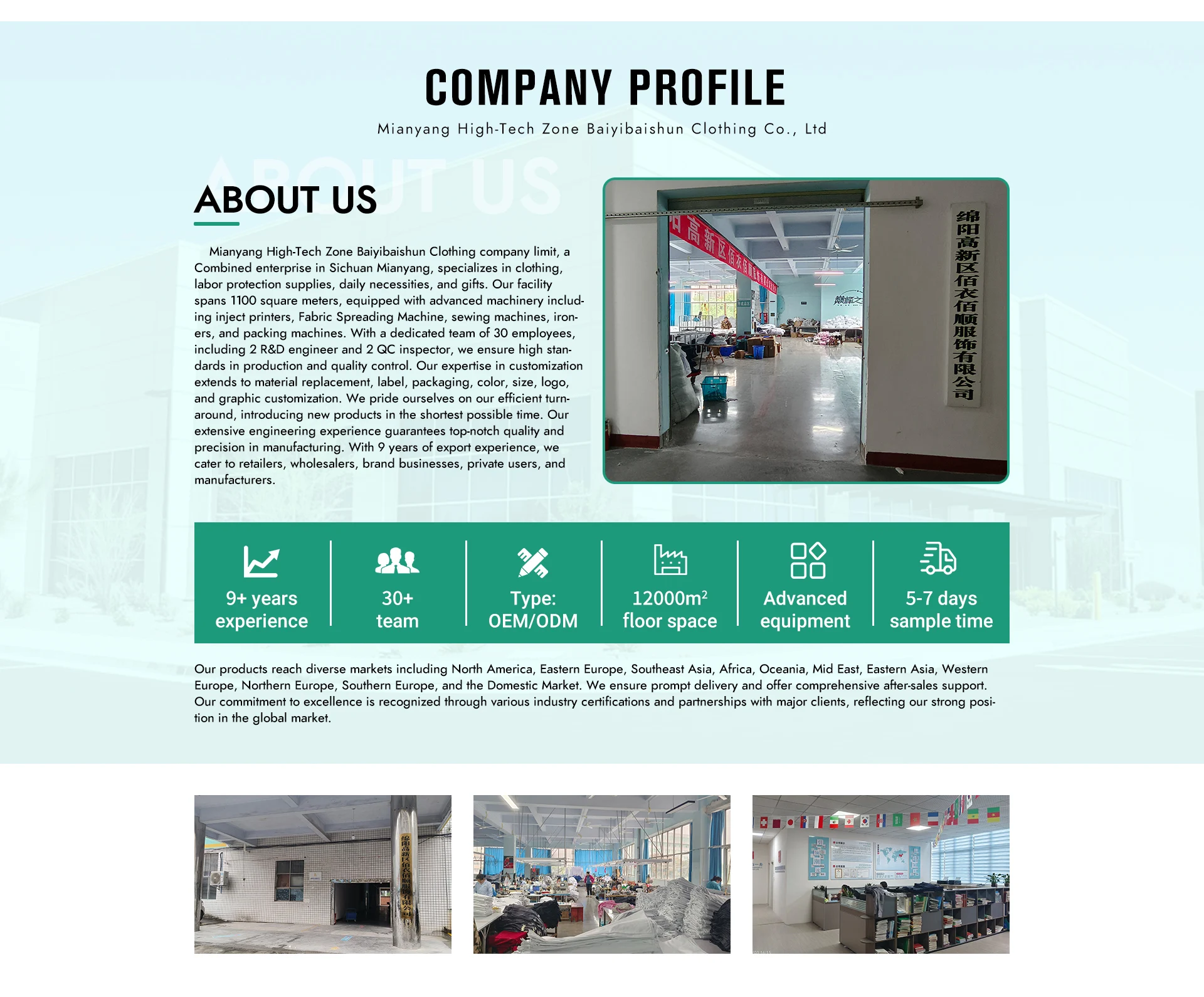 Mianyang High-Tech Zone Baiyibaishun Clothing Co., Ltd.